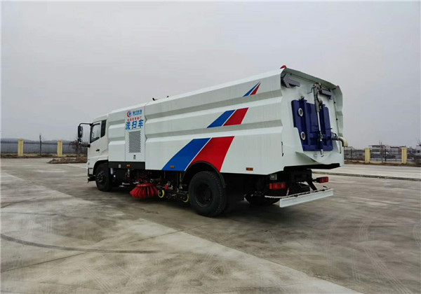 1. 采用吸掃混合的方式收集垃圾,濕式除塵、電液控制,液壓傾翻卸料的作業(yè)方式對路面進(jìn)行清掃作業(yè)。